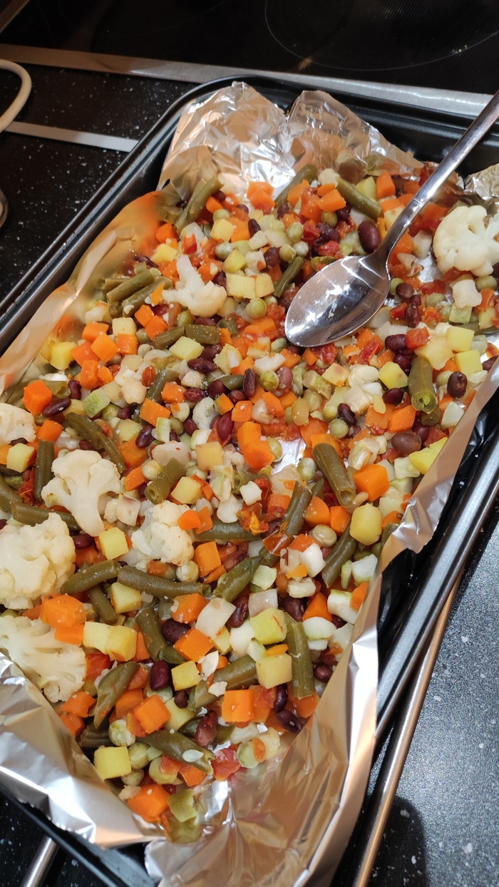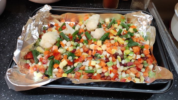 Берём готовую смесь из овощей делаем также, специи по вкусу. Я просто солю