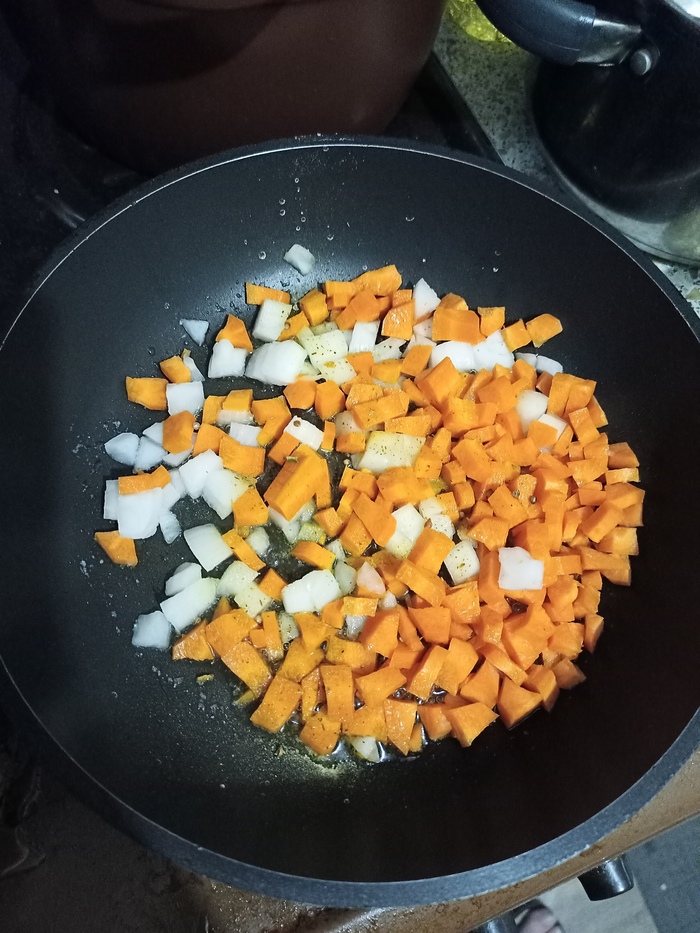 Ставим на минимальный огонь и постоянно перемешивая, прогреваем и пюре завариваем.