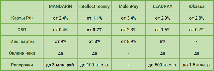 Leadpay — заточены под работу с онлайн-школами и частными специалистами в сфере инфобизнеса, много специальных решений для этой сферы, рассрочки для ваших клиентов до 500 000 руб. Промокод: SENYATOP для комиссии 0% на первые 200 000 руб.