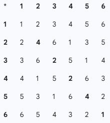 Вот как выглядит закон их взаимодействия (умножение по модулю 7):