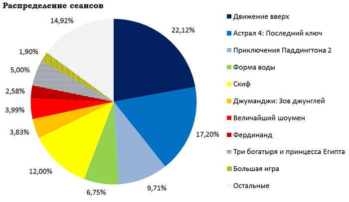 Кассовые сборы российского кинопроката и распределение сеансов за прошедший уик-энд (18 - 21 января)