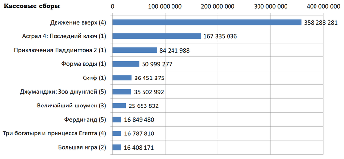 Цифра в скобках обозначает, какую неделю фильм идёт в широком прокате.