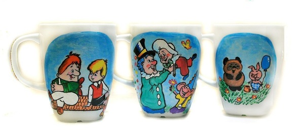 162 lizavetta.risuyu Лига Художников Детский чайный сервиз с любимыми старыми-добрыми мультиками. 9 лет назад Кружки расписаны акрилом, запекались в духовке при 160 градусах, готовы к использованию) [моё] Кружки Творчество Ручная работа Котенок Гав Мультфильмы Карлсон Винни-Пух Приключения поросенка Фунтика