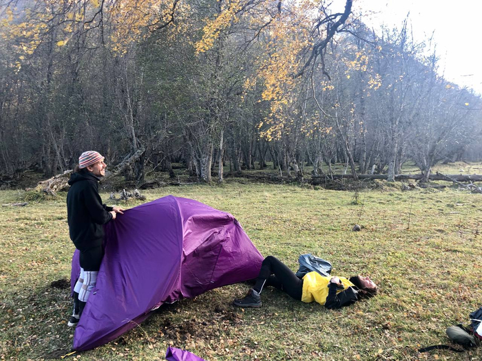 Мы решили не торопиться и взять день отдыха, подойти к перевалу и "побатонить", благо погода позволяла.