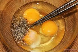 Пришлось вбить в стакан два яйца, чуть перемешать, накрошить туда, зеленого лука и пол кусочка серой горбушки, присолил, поперчил. Сунул в стакан вилку.