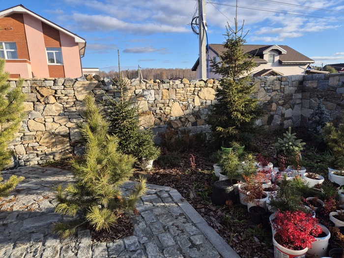 Плитка(а точнее брусчатка) у меня уже была. У соседа, причем в этом же углу(только с евойной стороны) давно валялась. Я ее и так уже много лет помаленьку обобществлял в свое хозяйство, а давеча говорю ему - а не продашь ли ты мне ее вообще всю. А сосед такой - да так забирай. Я тогда в порыве жадности ее всю поближе к своему дому тачкой оттараканил.
