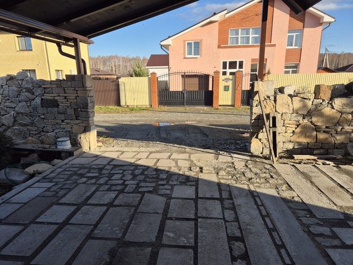 Далее заказал машину гравия и черты пухто стали потихоньку вырисовываться(тут я уже и плиточку стал ложить)