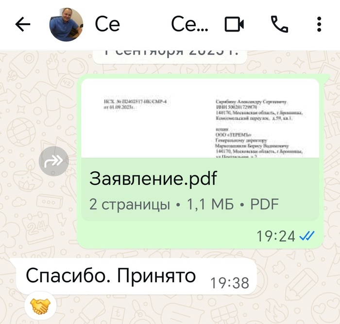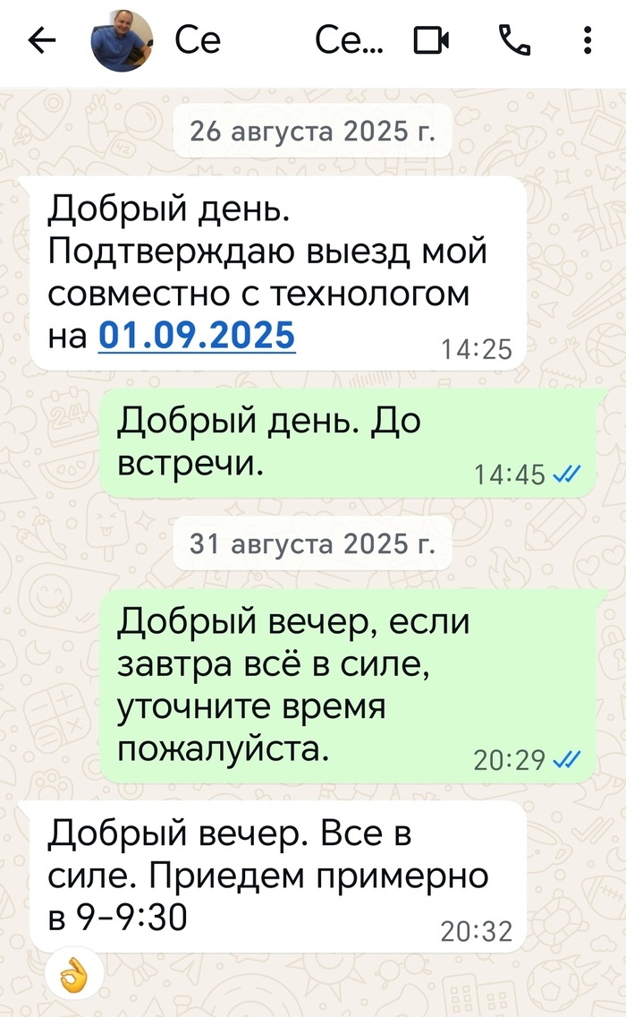 Весной выяснилось, что компания, с которой был заключен договор ликвидирована (дочка Терема в виде ИП, которых как оказалось очень много) и в конце апреля нам пришлось снова напомнить о себе уже более настойчиво, после чего 6 мая 2025 года представитель компании всё таки решает навестить нас своим очередным визитом для обсуждения вопросов устранения недостатков.