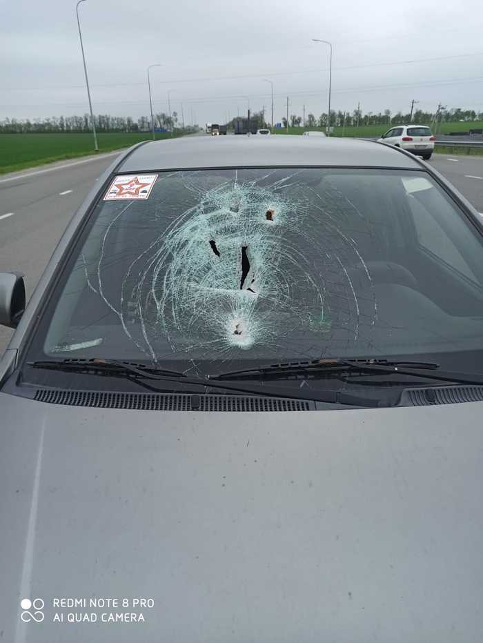 Ехала моя подруга по трассе Ростов на Дону - Новочеркасск (северный объезд) и в районе поворота на аэропорт прилетает с встречки такая приблуда из кузова камаза