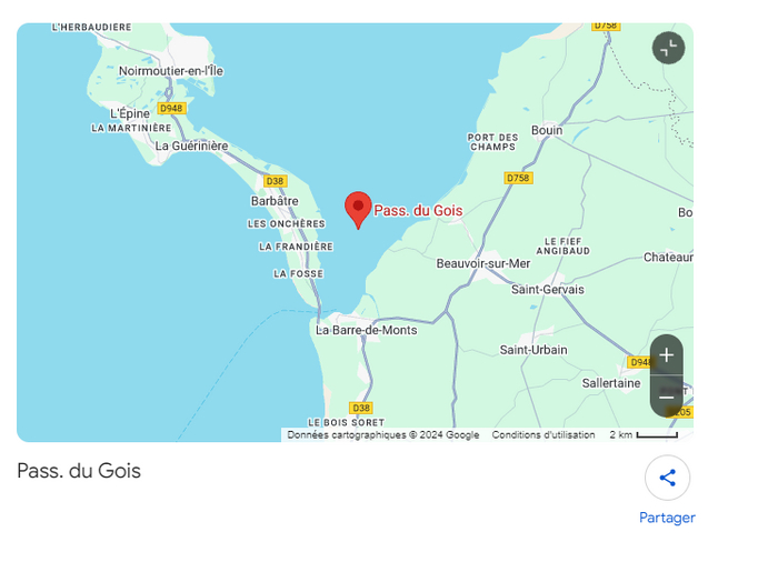 Эта подводная дорога длиной 4,2 км соединяет континент с островом Нуармутье во время отлива.