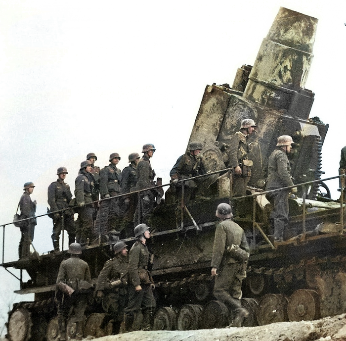 Видео рассказывает об истории создания, технических особенностях и боевом применении немецкой тяжелой 600 мм самоходной мортиры «Карл» или Gerät 040. Ниже приведен текстовый вариант с колоризованными мной для этого ролика фото.