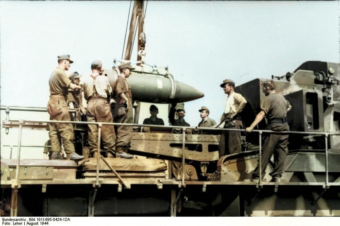 Для стрельбы были разработаны лёгкий и тяжёлый бетонобойные снаряды с весом 1700 кг (в том числе 280 кг взрывчатых веществ) и 2170 кг (в том числе 348 кг взрывчатых веществ), а также фугасный (нем. Sprenggranate) массой 1250 кг (в том числе 460 кг взрывчатых веществ).