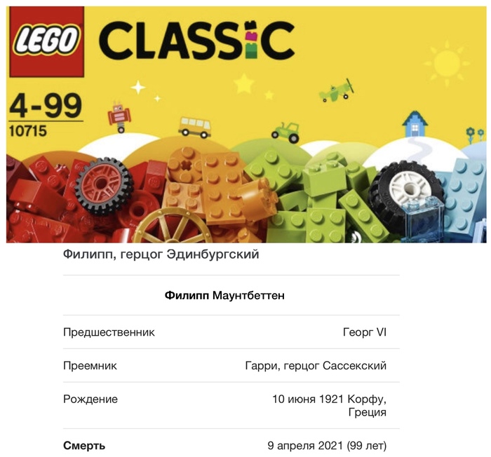 Принц Филипп LEGO Негатив Смерть Ответ на пост Текст