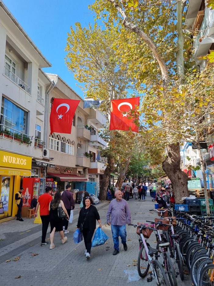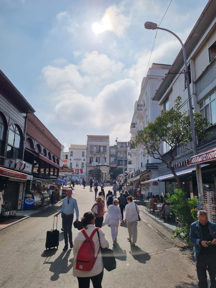 Можно заметить, что и тут народу не сильно меньше, чем на стамбульских улицах. Да, район пристани и соседние улицы с кафе довольно плотно забиты людьми и все теми же торговцами