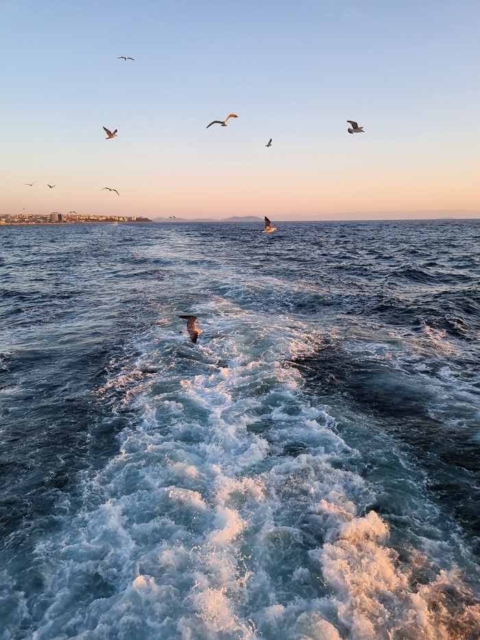 Лирическое отступление закончилось, как и время нашего прибывания на великолепной Бююкаде) Обратно мы плыли уже под вечер, наслаждаясь видами моря в закатном солнце и экскортом чаек)