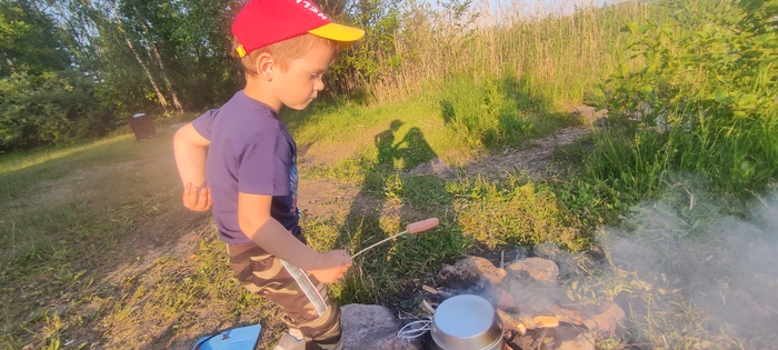 Ну и наконец. Приземлились на берегу. Зажгли костёр, суп поставили варить (вкуснее лесного супа ничего ещё не ела)).