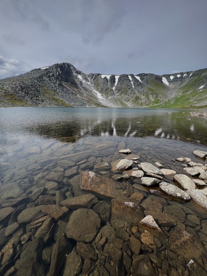 - Озеро Большое Балбанты, укутанное уютными облаками, в сумерках.