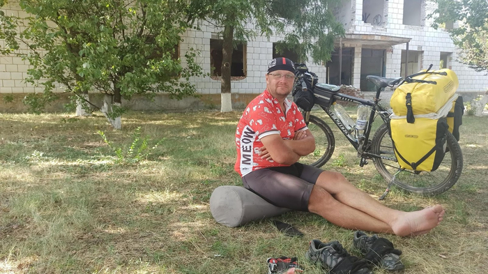 День 93 (Ростовская область). Жарить начало с самого утра. Едва солнце нарисовалось на небе, сразу дало понять, что поблажек не будет. Как назло, именно сегодня, я совершенно не выспался. Начал активно спускать мой надувной матрас, поэтому половину ночи я ворочался, а под утро слушал перекличку местных петухов, пока не провалился в короткую дрëму. Стараемся собраться без лишних задержек. Вместо завтрака короткий перекус у магазина, где мы запасаемся водой, а дальше, палящее далëко не будь ко мне жестоко.