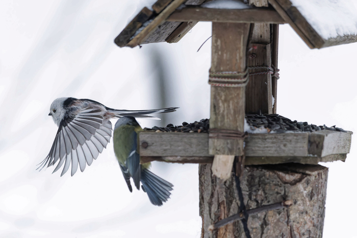 Иду себе, рассыпаю семки. Отошёл от одной кормушки и услышал ополовников. Что бы не таскать пакет с семечками туда-сюда-положил его на снег на краю тропинки. Пока фоткал синиц-мимо меня прошёл мужик с собакой. Когда я закончил фотографировать то решил пойти дальше, но пакета с птичьей едой уже не было. Ну и нахрена дядя тебе эти семечки понадобились? Ведь дальше по пути следования кормушки пустые остались.