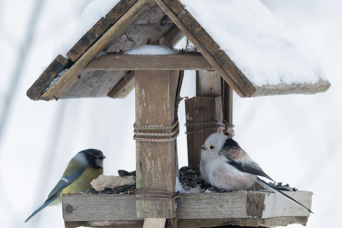Чечетки. не видел их года 2 на кормушках. довольно пугливые. пришлось закопаться в сугроб чтобы подлетели)))