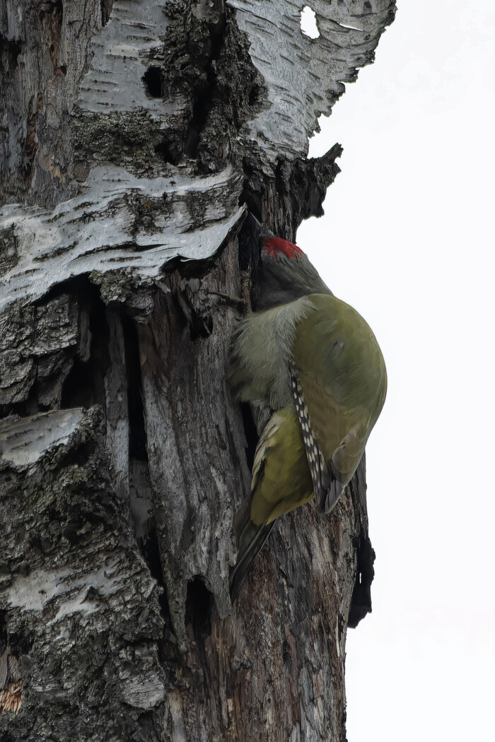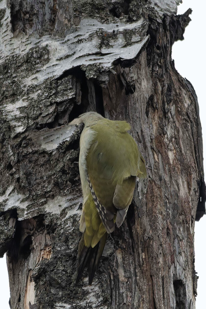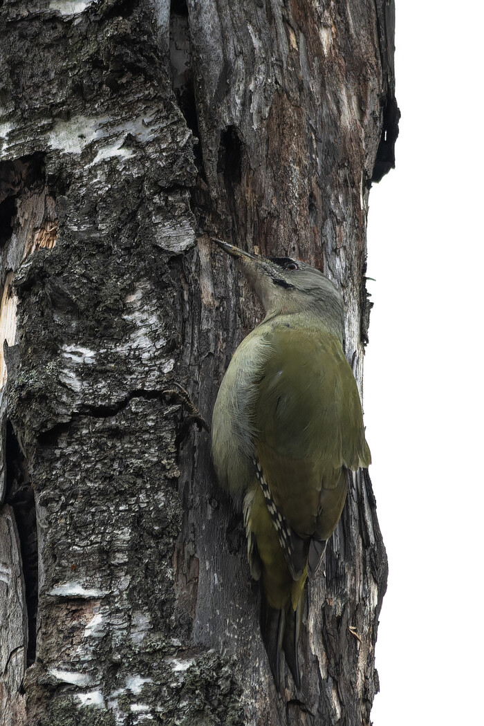 Седой дятел был очень увлечён поиском еды. И долго не обращал на меня никакого внимания.