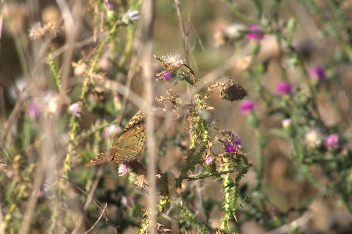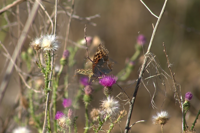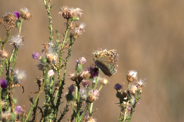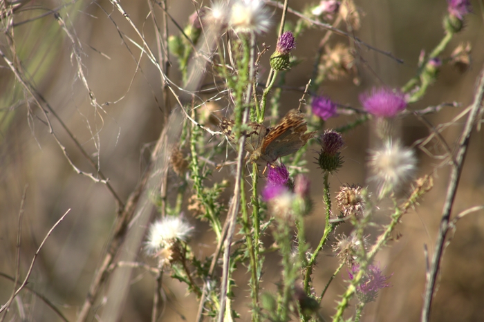 Вторая фотоохота вышла тоже случайно, на плато перед скалами. Внизу жена заметила обилие бабочек на цветущем репейнике (по названию растения могу ошибаться). Я таких кадров не мог упустить.