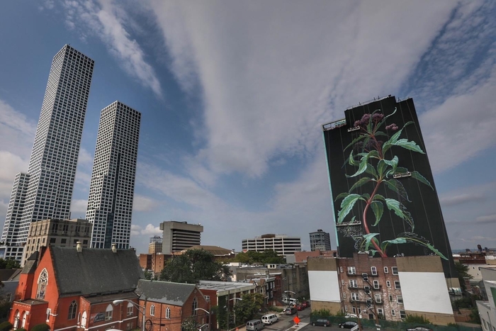 Огромный и свежайший мурал, сорняк Джо-Пай, Jersey City.