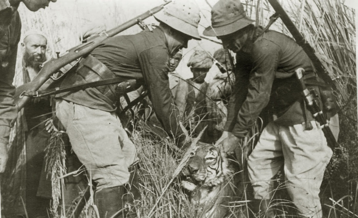 Пограничники поймали тигра у реки Пяндж на советско-афганской границе, 1936 год.
