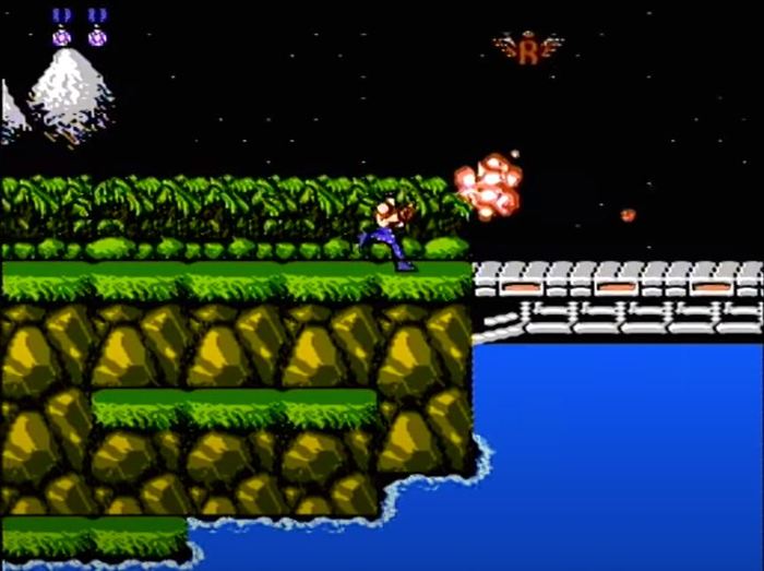 В третий раз мне удалось лицезреть приставку в живую и даже поиграть.Раз в несколько лет мы ездили к дедушке в гости в славный город Новосибирск. Было у меня там 3 брата и 4 сестры, а это гарантировало море веселья. В этот раз я увидел у них странную приставку подключённую к телевизору, дети выстраивались в очередь, чтобы поиграть в неё. Все говорили, что это та самая денди, но пистолетиков я не увидел, а только джойстики с кнопками, они их кстати тогда называли пульты. На экране я увидел просто потрясающую картинку - двое мужиков с винтовками, бежали по джунглям, расстреливали врагов, меняли оружие, плавали в воде, уничтожали турели, а мосты по которым они бежали - взрывались. Было шикарно.