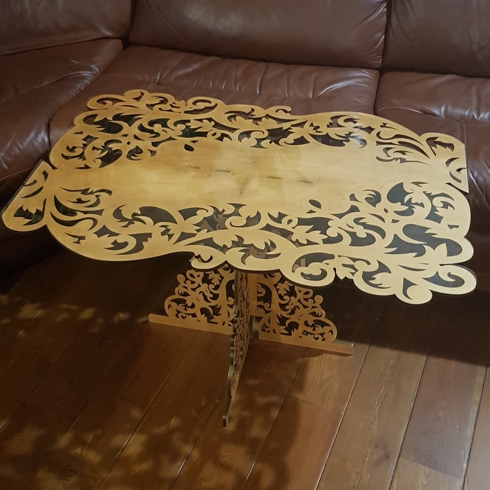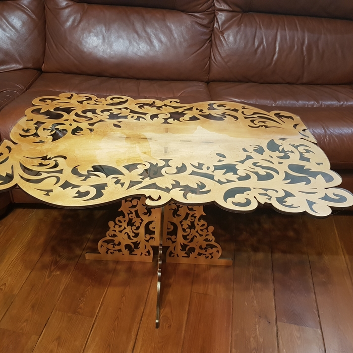 Когда приобретала лазер для работы с кожей, совершенно не предполагала, что смогу делать такие практичные вещи из фанеры. О мелких коробочках конечно думала, о столах - нет!