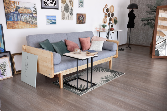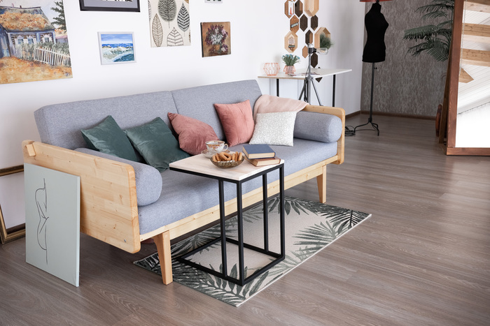 Так, что бы столик был низкий, но его можно было надвинуть на диван. Круглый уже был, по этому взгляд упал на прямоугольную форму. Шаблон собрала из какой то арки, порезала, добавила запчастей. Основание от какого то столика. Тоже немного перекроила. Добавила распорки.