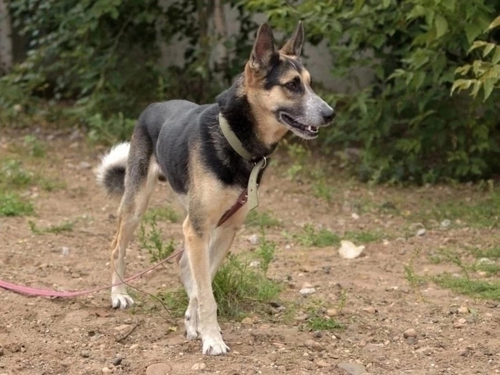 Ищем хозяина для собаки. Взять себе не можем. Прибилась на даче. Девочка, молодая, веселая, добрая, умная, знает некоторые команды. Похожа на щенка черной немецкой овчарки.