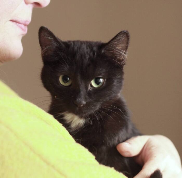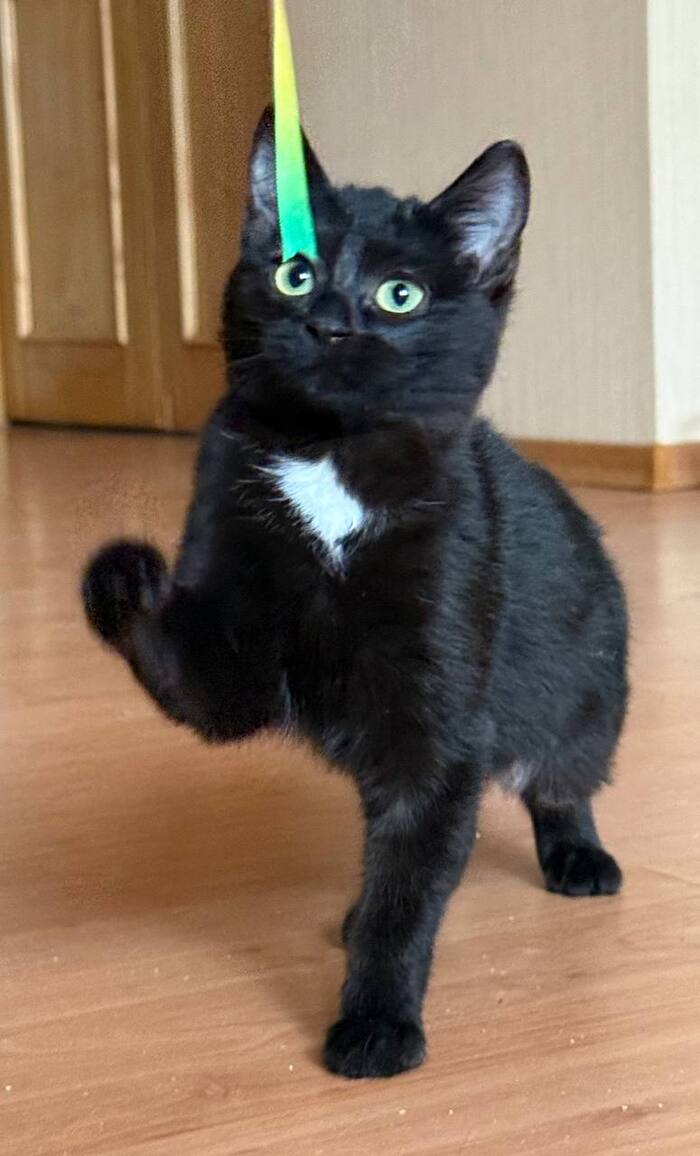 Малыш приехал к нам из Волгограда. Он был найден на стройке вместе с 11 братьями и сестричками. Все быстро нашли дом, но Бучу повезло меньше: у крохи был перелом бедра. Он долго лечился, но сейчас всё позади, мальчик совсем окреп и приехал к нам, чтобы найти свой дом.
