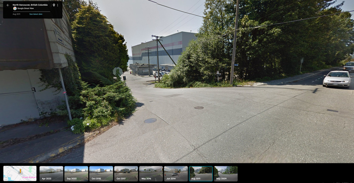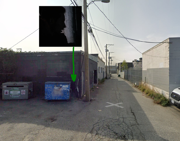 Эта сцена была снята на противоположном (южном) берегу Ванкуверского залива на улице Woodland Drive.