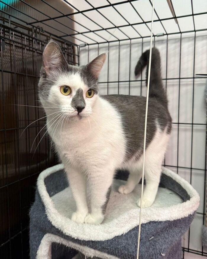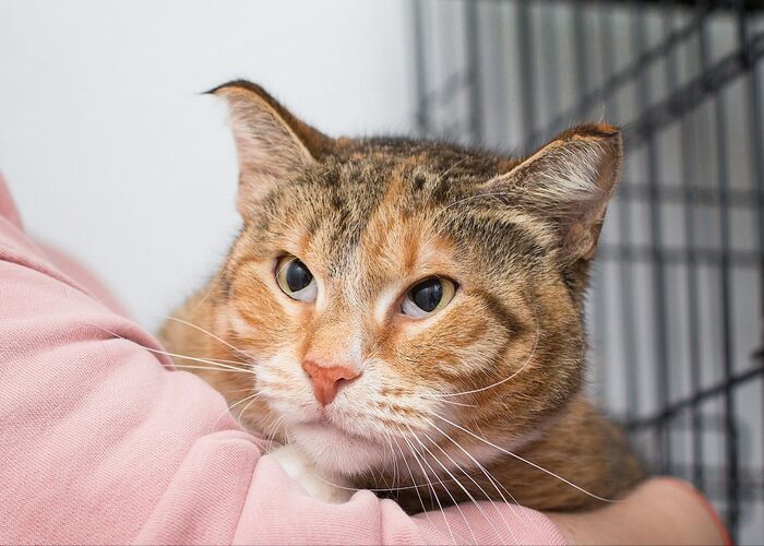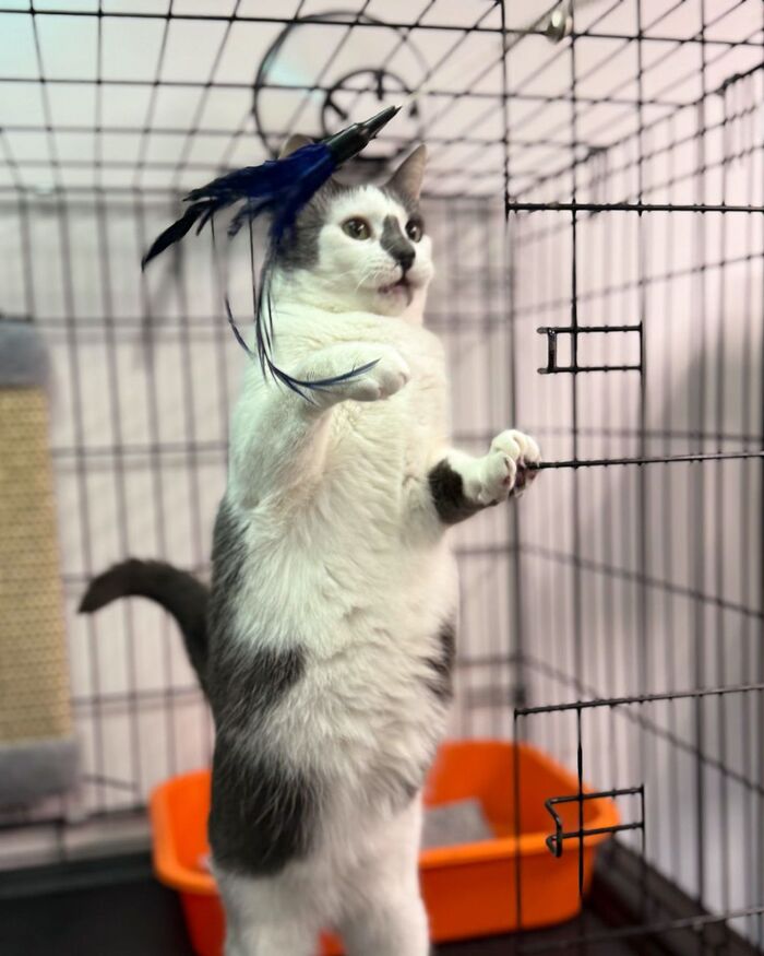 Масяня живет в клеточке — не самое лучшее место для общительной человекоориентированной кошки. Но это лучше, чем улица, где она бы просто погибла...