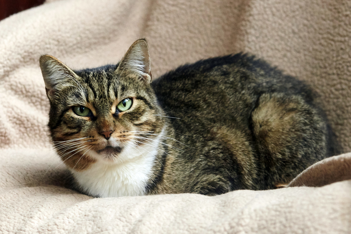 Варя ласковая, контактная. Доверяет людям, с удовольствием гладится. В общем, хорошая добрая кошечка, которую почему-то уже год не замечают.