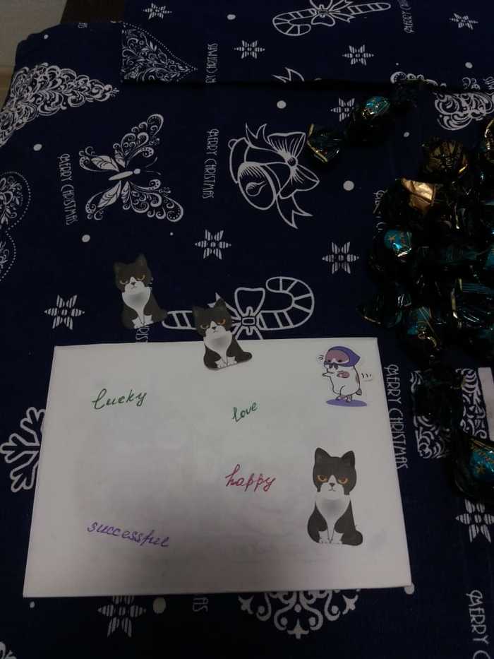 Добежав до дома, сразу же вскрываем посыль. Котоинспекции у меня нет, что поделать, сразу переходим к вскрытию! Все подарочки подписаны, все аккуратно упаковано, моя Снегурочка старалась, очень!