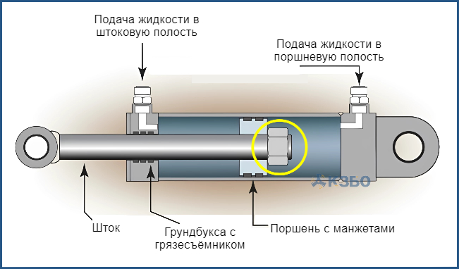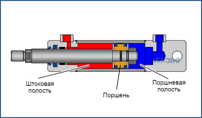Штоковая полость - тожезаполняется гидравлическим маслом под давлением. Это давление тоже передается на поршень, но уже для возврата поршня в исходное положение.