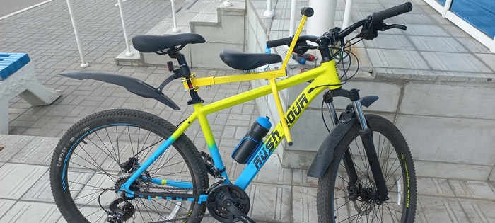 Весной 21 года мой хороший знакомый уехал в отпуск, а у него был старенький велосипед gt avalanche 1.0 и у меня появилась возможность проверить насколько возможно ездить по городу на велосипеде, как на основном транспорте. Меня хватило на неделю и то кое как, ноги просто не ходили, утром рука так и тянулась к ключам от машины, но нежелание стоять в пробках побеждало. Потом вернулся знакомый и велосипед был отдан ему, не прошло и двух недель, как,на мое удивление организм стал требовать очередной порции нагрузки,после недолгих обсуждений с супругой,было принято решение приобрести уже свой велосипед. После недолгих поисков и мониторинга различных площадок с целью приобретения б/у аппаратов, но всё таки выбор пал на новый велосипед малоизвестной марки rush, собственный бренд рич фемели.