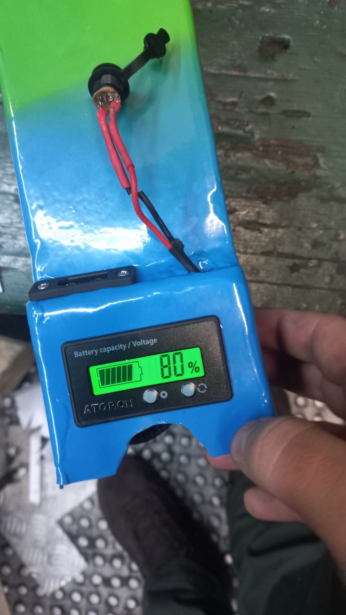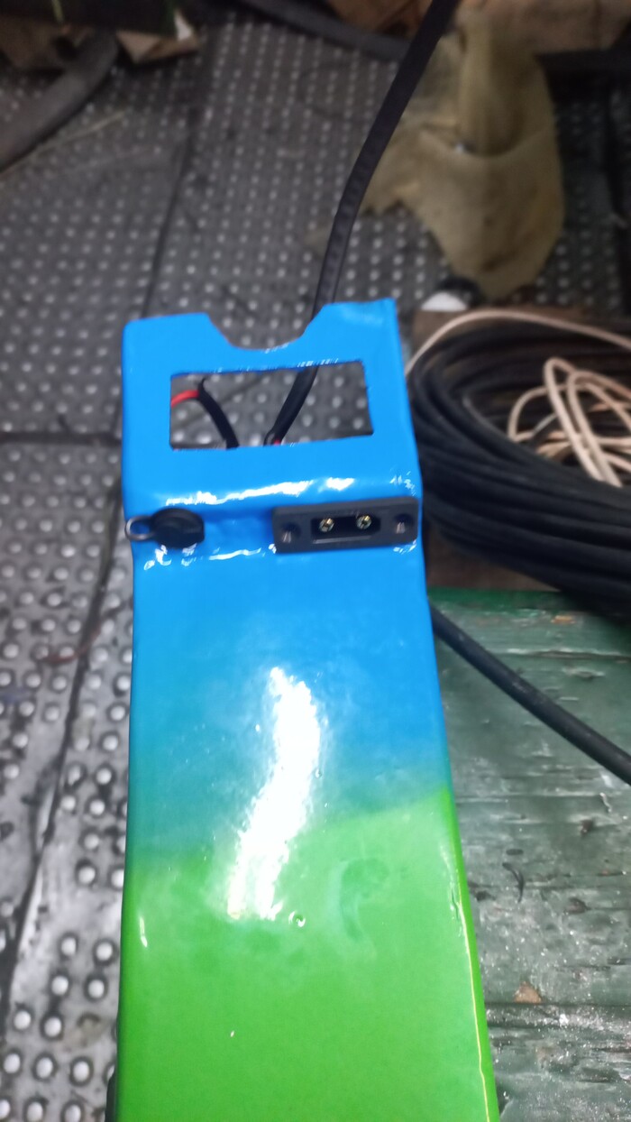 Первым делом сделал корпус для батареи, использовался алюминиевый лист и TIG пайка, с последующей обработкой швов, чукча только ручной дуговой умеет,а вот аргон как то криво вышел, хорошо, что гриндер был неподалеку. Дальше последовала полимерная окраска, благо завод,все под рукой и в бесплатном доступе для своих. Батарея сделана съёмной,выведены органы индикации.