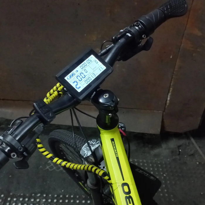 Вот такая вундер вафля получилась. Из первых тестов стало понятно, что нужно ограничивать ток на контроллере. Из 40 возможных ампер на 54 вольта(считай 2000ватт в пике) было оставлено 40%, если верить дисплею, то осталось порядка 700ватт на моторе, по ощущениям как 4 меня тянет. Езжу только на педалях в режиме ассистента, на режимах не больше 200ватт,это когда мотор работает,только когда вращаются педали, ручку газа использую только, когда еду в сад с дочерью, уж очень ей нравится быть причастной к движению. Максимальную мощность практически не использую,только если нужно вдруг резко ускорится.