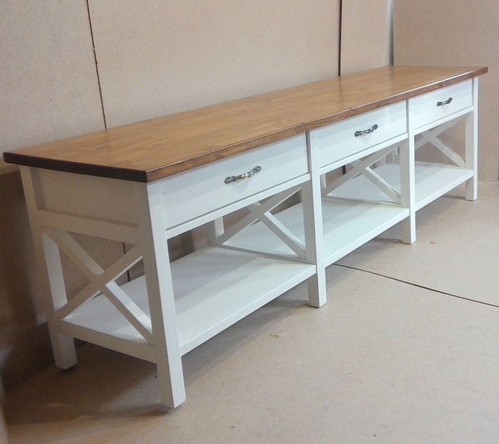 Наша мастерская как раз и занимается изготовлением мебели и предметов интерьера из древесины. Вот один из примеров - большая консоль в стиле Прованс контрастной расцветки.