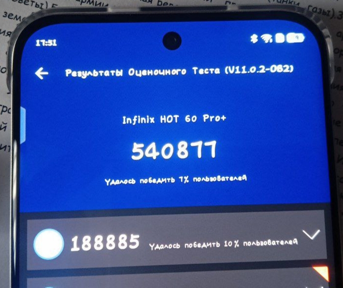 •AnTuTu Benchmark v10.4.2 (к сожелению скриншотов не сохранилось, поэтому придется довольствоваться обычными фотографиями)