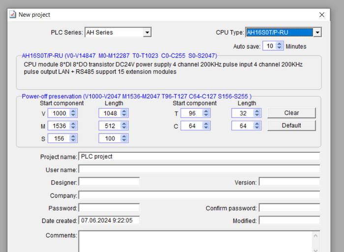И после этого, добавляем все необходимые нам регистры — если кнопки-лампочки, то регистры 8 бит, если целочисленные, то 2 байта, если вещественные с запятой, то 4 байта.