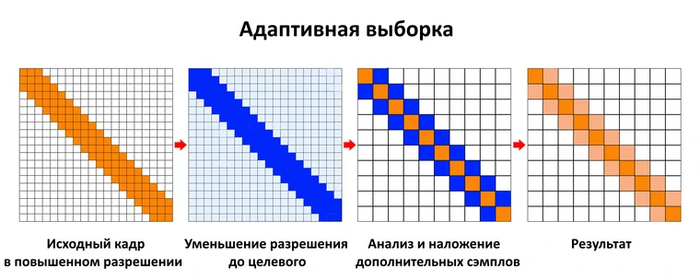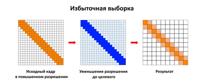 Избыточная выборка, или Super Sampling Anti-Aliasing (SSAA), является старейшим типом сглаживания. Суть его работы достаточно проста — картинка просчитывается в большем разрешении, а потом принудительно уменьшается до разрешения устройства вывода.