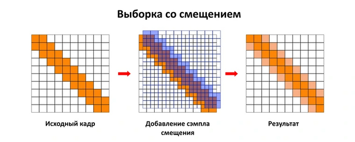 По сути, видеокарта просчитывает только два сэмпла, как при MSAA 2x. Но из-за наличия смещенных точек каждому пикселю итогового изображения достается уже пять сэмплов, и само сглаживание даже превосходит MSAA 4x. Но есть у такого способа один существенный недостаток. Из-за того, что сэмплы берутся не только от целевой точки, но и от соседних, изображение теряет четкость и становится размытым.