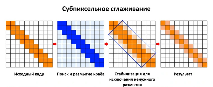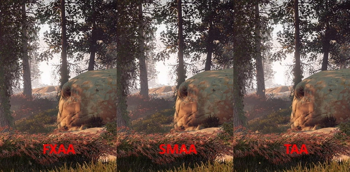 Первой такой способ в конце нулевых предложила NVIDIA, назвав его Fast approXimate Anti-Aliasing — FXAA. Его суть в том, что специальный алгоритм ищет на уже отрендеренной картинке края объектов. Затем пиксели, попавшие в эти зоны, сдвигаются на небольшое расстояние, чтобы создать размытие краев.