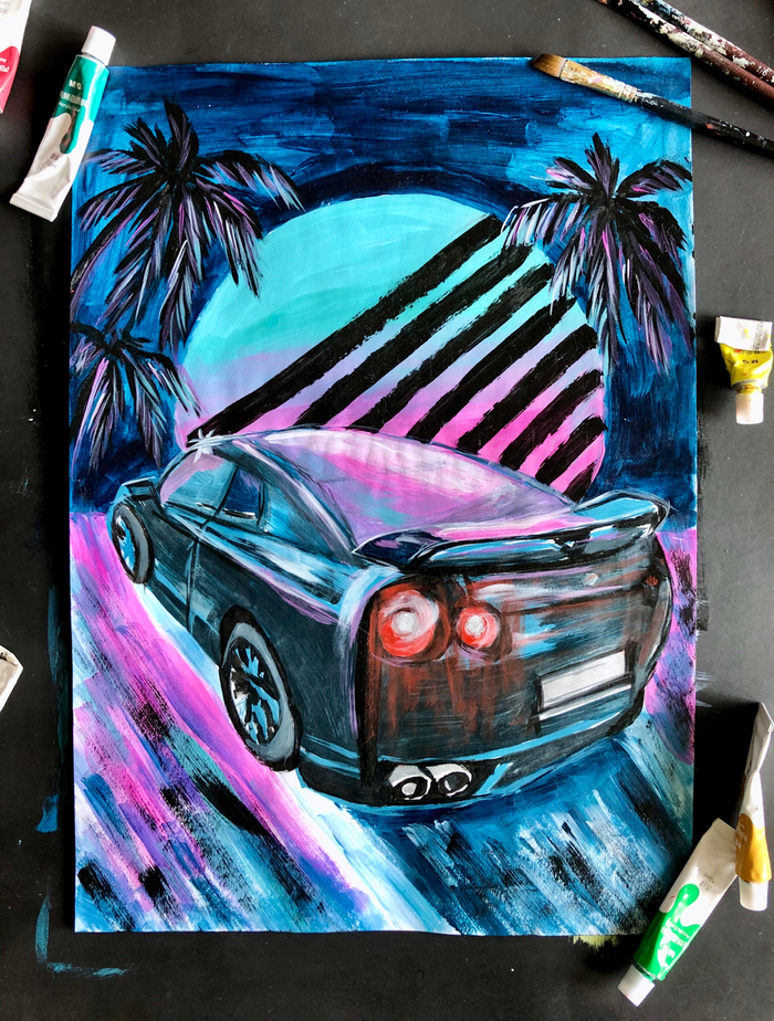 127. Мне захотелось попробовать техничку рисования большими кистями. Из детализации в мыло) Я люблю разглядывать подобные работы. Но когда дело дошло до личного опыта, оказалось, что слишком скучно. Там по краям горы должны были быть свечки, а тут это какие-то непонятные столбы.