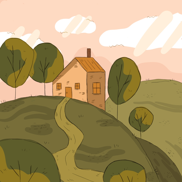 134. И вот я наконец осознала это и решила прийти к компромиссу: оставить чёткие границы объектов. Стало легче, и картинка мне нравится. Если бы ещё домики были ровными, а так всё норм)