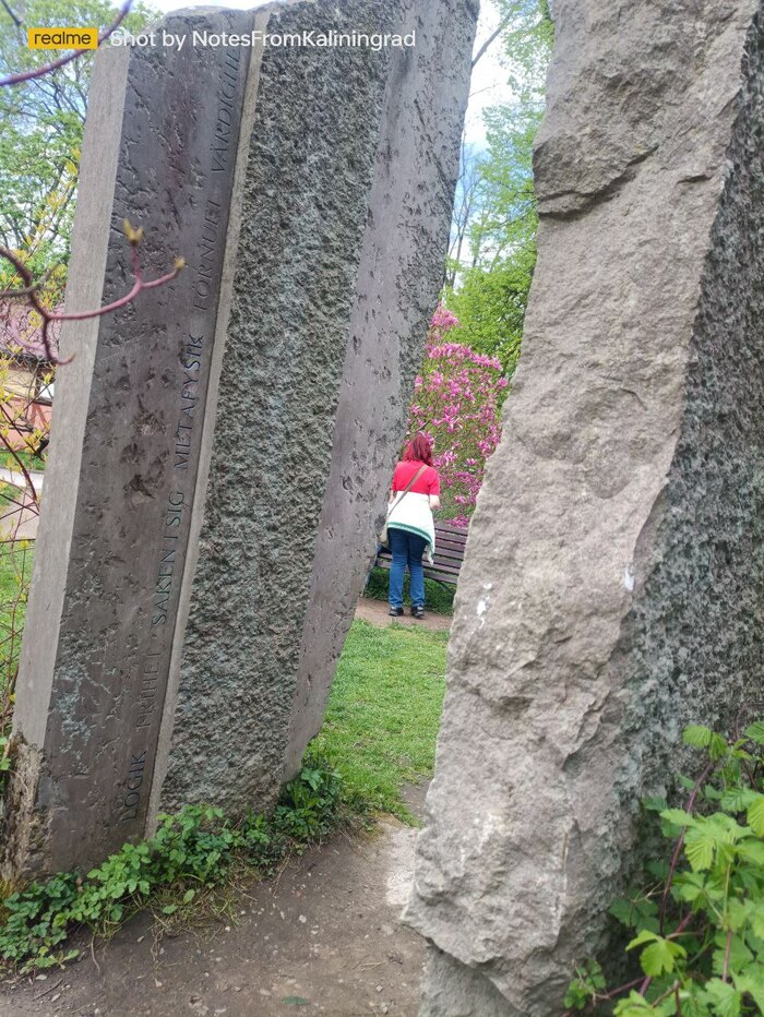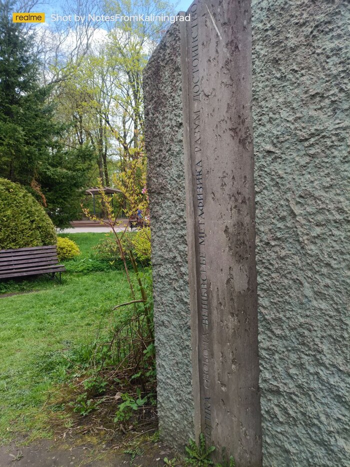 На гранитных плитах высечены ключевые понятия философии Канта на русском и шведском: логика, свобода, вещь в себе, метафизика, разум, достоинство. Это не просто слова, а прямое указание на интеллектуальное наследие города.